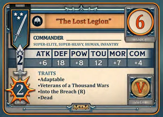 ***Sovereign Commander.*** You always begin battle with maximum Communications, and all units under your command have advantage on Attack, Power, and Command tests.